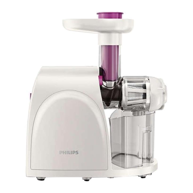 Máy ép hoa quả chậm Philips HR1830 hoạt động dựa trên lực ép của trục vít xoắn ốc để từ từ nghiền nát nguyên liệu mà không gây ra bất cứ lực ly tâm nào với nước ép. Sau đó, một bộ phận tách bã sẽ đẩy bã hoa quả, rau củ không thể ép được đẩy ra ngoài.
